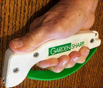 How do you sharpen your garden tools? Do you have a favorite stone or gadget to keep them sharp for necessary garden tasks? One of my favorite garden tools is a GardenSharp® Garden Tool Sharpener. I purchased it at a Duluth Trading retail store in Duluth, MN for $15.95 in 2016 while on vacation with family and friends. This sharpener, along with other Accusharp tool and knife sharpeners, are available through Amazon and numerous other local retailers including Menards, Ace Hardware and WalMart. The sharpener can be used for pruners, loppers, shovels, hoes, and lawn mower blades. NOTE: as a safety precaution, when sharpening lawn mower blades, remove the blades from the mower first before sharpening them.
