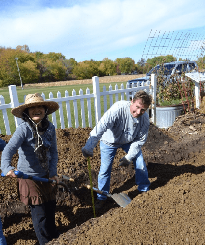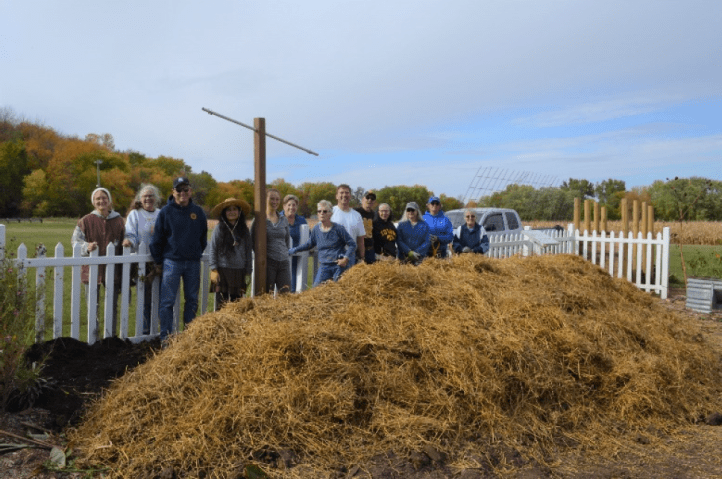Last October, John led efforts of nearly 20 Master Gardeners to learn about and create a hügelkultur in the demonstration garden. Preparing the soil in the fall, he said, will allow it to rest and begin to recover during the winter months. He started the process by assembling all the needed materials—two loads of compost from the Iowa City Landfill, loads of dried manure from an area farmer, plant debris from gardens, and green and aged wood.